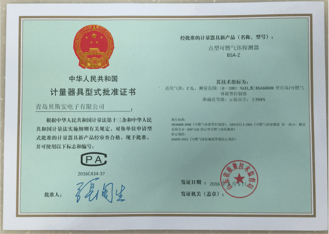 我公司是青島市具有國家質量技術監督部門頒發的計量器具生產許可證的生產企業;獲得國家防爆電氣產品質量監督檢驗中心頒發的防爆合格證;獲得國家公安部消防產品合格評定中心頒發的消防產品形式認可證書。